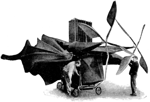 The legends of the dawn of history, however, distribute the power of flight with less of prejudice. Egyptian sculpture gives the figure of winged men; the British Museum has made the winged Assyrian bulls familiar to many, and both the cuneiform records of Assyria and the hieroglyphs of Egypt record flights that in reality were never made. The desire fathered the story then, and until Clement Ader either hopped with his Avion, as is persisted by his critics, or flew, as is claimed by his friends.