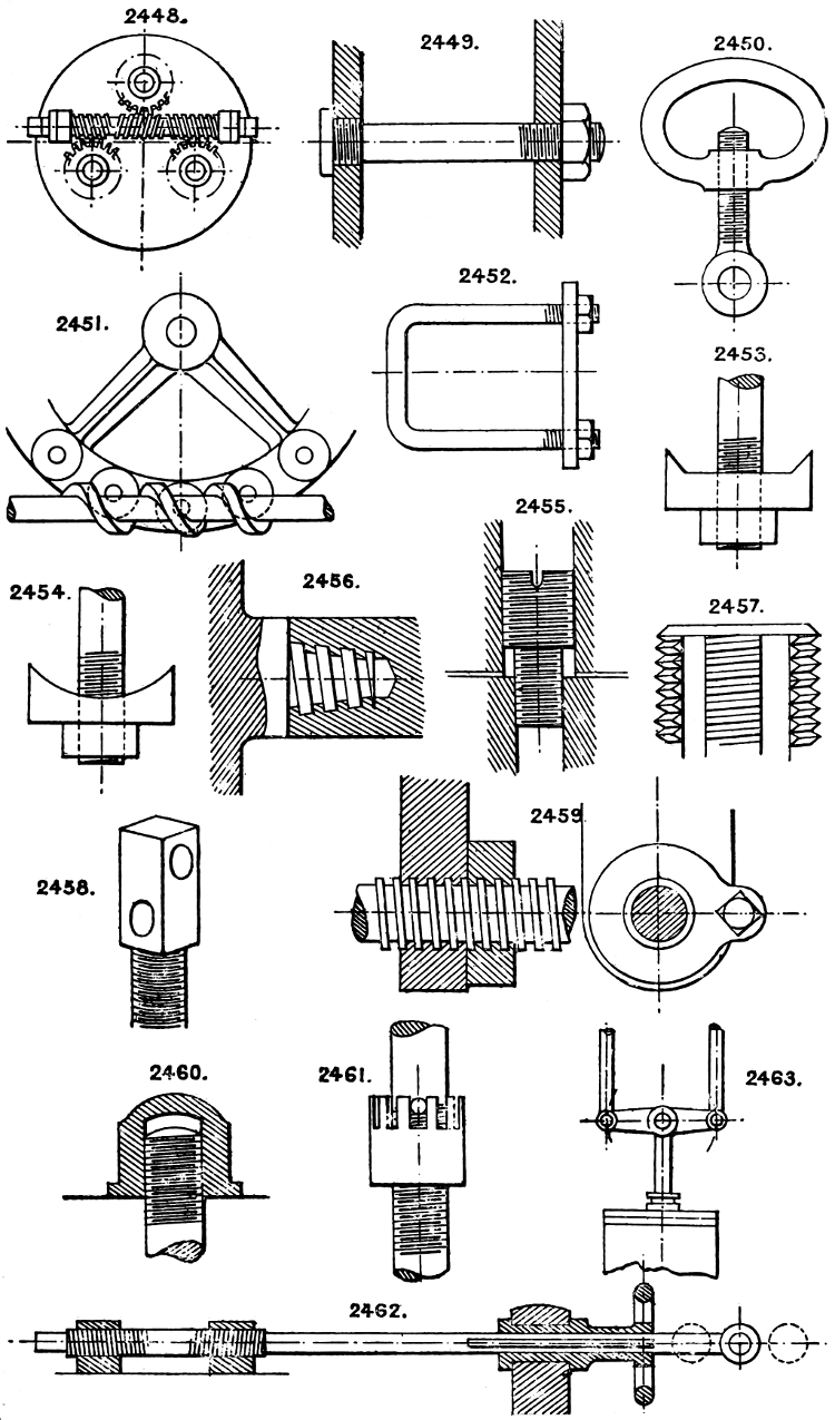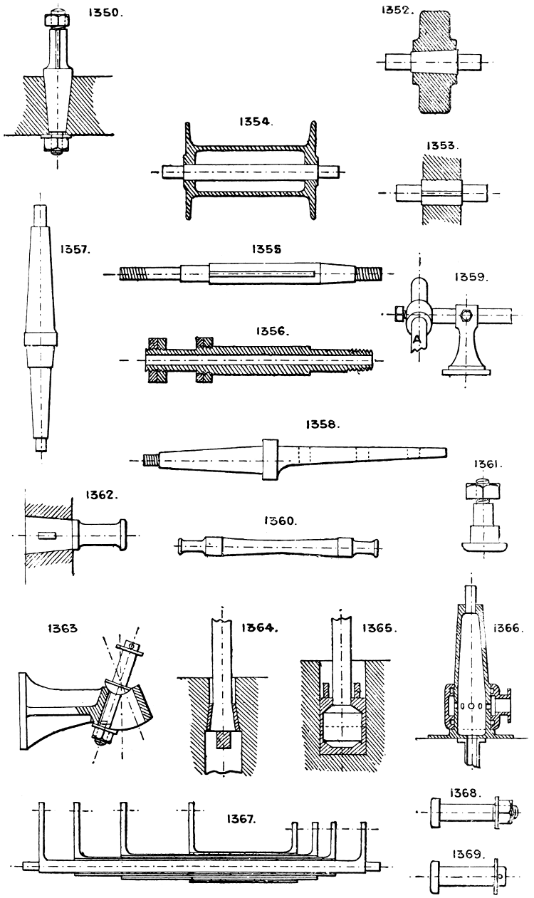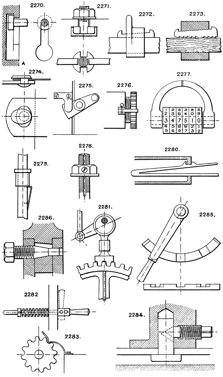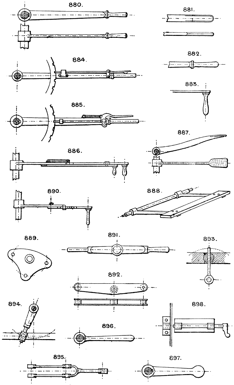 In the course of twenty-five years of such experience, I have found the want of such a volume as the present, and endeavoured to supply the deficiency in my own practice by private notes and sketches, gathered promiscuously, until the difficulty of selection and arrangement became so apparent that I began to classify them, as they exist in the following pages. A few weeks of unusual leisure have enabled me to complete this work and amplify it by numerous additions, and it is now presented in the hope that it will be found of equal service to others engaged in the head-splitting, exhausting work of scheming and devising machinery, than which I can conceive of no head-work more wearing and anxious, Several valuable works have already[vi] found numerous users, and there is no lack of admirable collections of memoranda, rules, and data for designing and proportioning the various constructive details of machinery; but, as far as I am aware, there is no work in existence which aims at the same purpose as is attempted in the following pages, viz. to provide side by side suggestive sketches of the various methods in use for accomplishing any particular mechanical movement or work, in a form easily referred to, and devoid of needless detail and elaboration. A sketch, properly executed, is—to a practical man—worth a folio of description; and it is to such that these pages are addressed. For the same reason it has been deemed undesirable to add to the various sketches any rules or tables relating to strengths or dimensions, which may be found in numerous well-known volumes.
