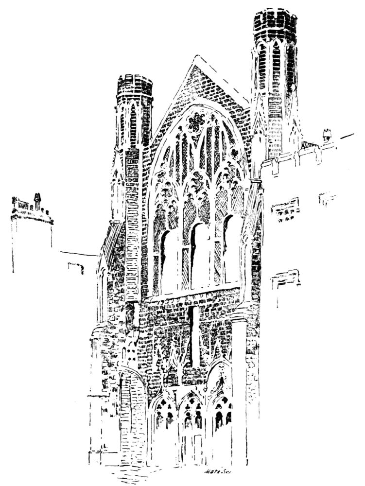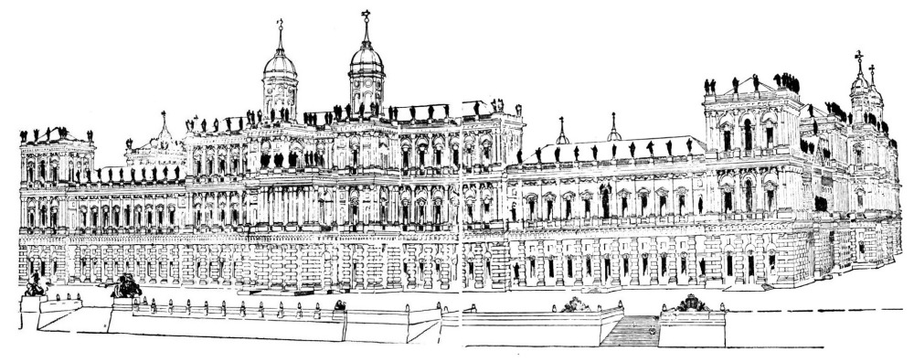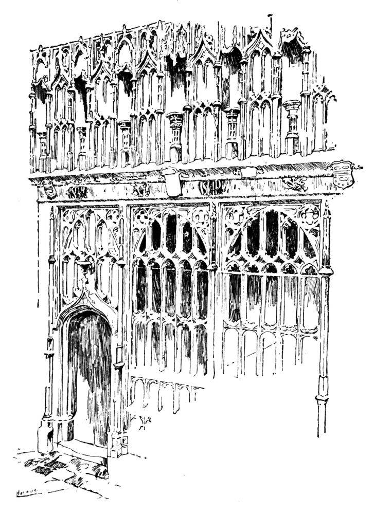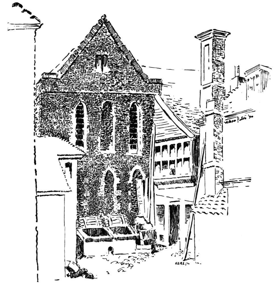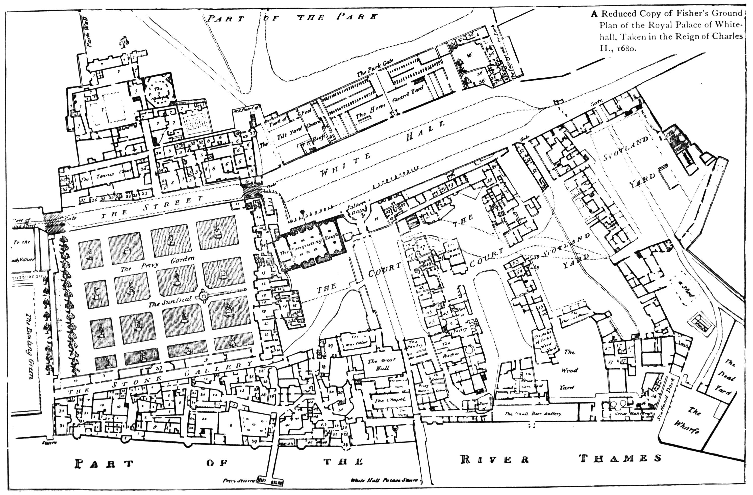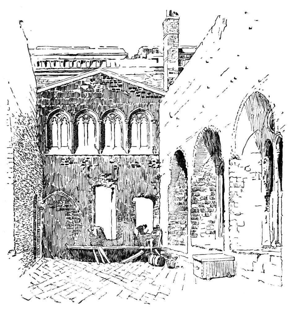 The kings of England held their Court in the Old Palace, the Palace of Westminster, for five hundred years. Of all the buildings which formed that Palace, there remain at this day nothing but a Hall, greatly altered, a Crypt, and a single Tower. Sixty years ago, before the last of the many fires which attacked the Palace, there was left, much disfigured, a single group of buildings which formerly contained the heart of the Palace, the king’s House. This group, however, was so much shut in and surrounded with modern houses, courts, offices, taverns, and stores, that the ancient parts could be with difficulty detached. Fortunately this task was accomplished before the fire: one can therefore restore one part, at least, of the Palace.