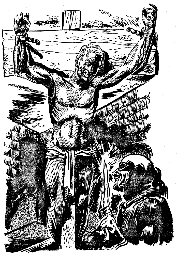 He hung from the post by his wrists. The wan sunlight glistened faintly on his naked back as he waited, eyes tightly closed, lips moving slowly as he pressed his face against the rough wood and stood on tiptoe to relieve the growing ache in his shoulders. When his ankles ached, he hung by the nails that pierced his forearms just above the wrists.
