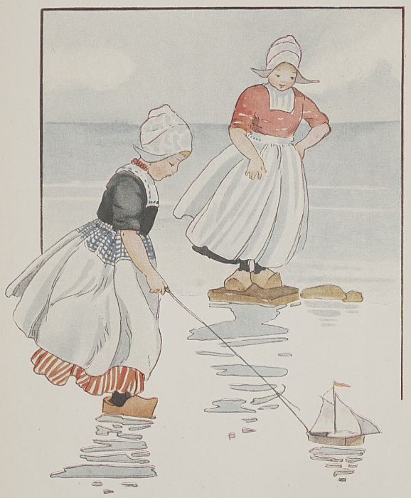 In “Windmills and Wooden Shoes” we have a continuous story of the doings of the Dutch children, Jan and Katrina and their little friends.