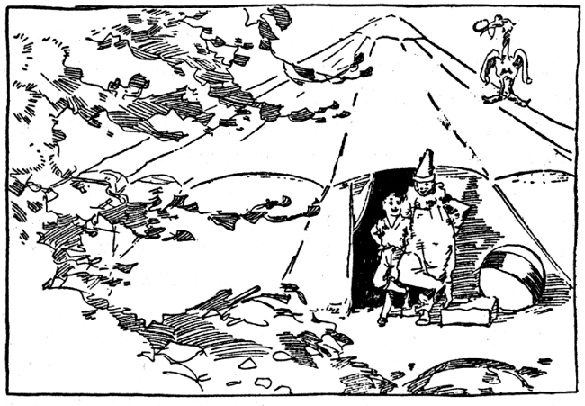 Now, while Panapee goes for his book, I must tell you that Mudge is a blue and barbarous country in the southwestern part of the Munchkin country of Oz. It is a hot, dry, desert land and the Mudgers themselves are a short-tempered, long-legged tribe of troublemakers. They live in blue, striped tents and, if it were not for their bright blue whiskers, you would take them for Arabs, as they wear sweeping white robes and turbans to protect themselves from the heat and desert sands.