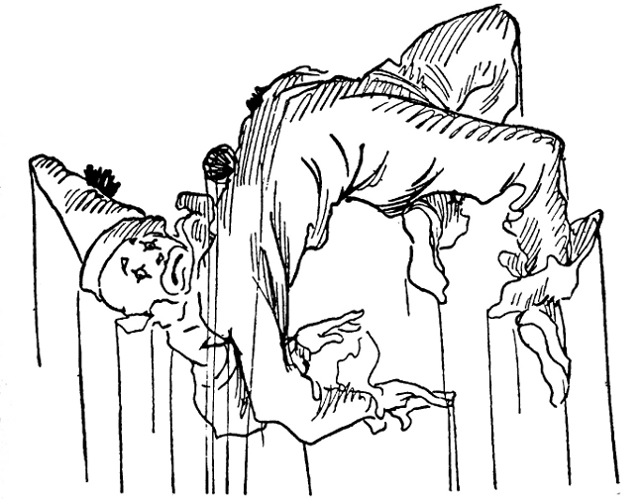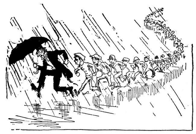 It was raining outside, it was hot and stuffy inside and it was the last day of the circus in Stumptown. All over the big tent people moved about restlessly on the hard seats, and grumbled when sudden splashes of rain came pelting through the tent top. Mothers were thinking anxiously of the wet journey home, young ladies were worrying about their spring bonnets, and even the boys and girls were only applauding half-heartedly as old Billy, the elephant, rang dinner bells in one ring and the Glicko sisters swung dizzily from trapezes in the other. The chief clown ran distractedly around both rings. He stood on his head, he walked on his hands, he leaped over the elephant, he pretended he was a balky donkey. But no one laughed. They didn't even smile at his oldest jokes.