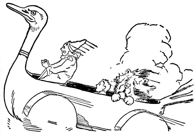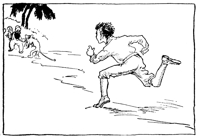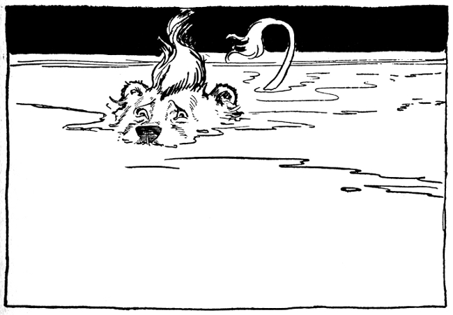 "Perhaps it is the Cowardly Lion," puffed Mustafa, springing rapturously from his throne, and next minute they had all rolled, run or tumbled out of the tent, screaming in a way to curdle the blood of twenty lions. Under the largest palm tree in the sandy waste Mustafa was pleased to call his garden stood a very lumpy and peculiar-looking lion!