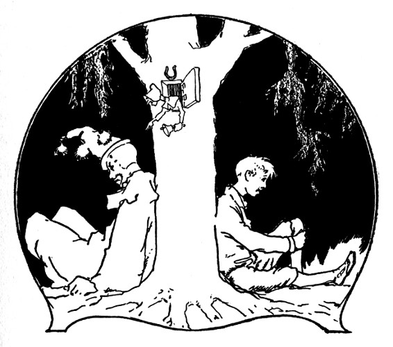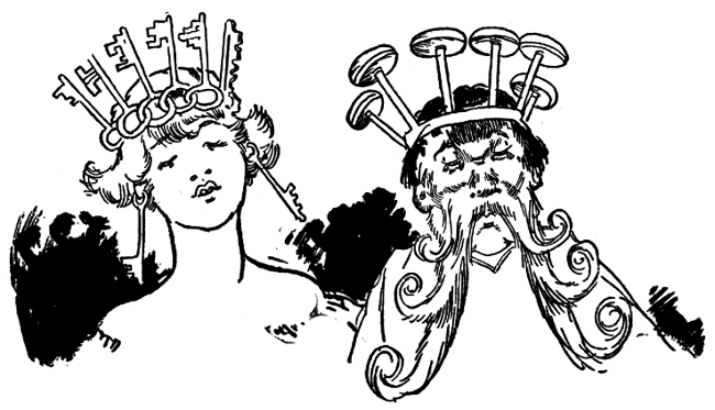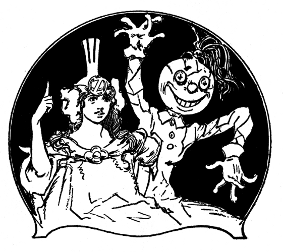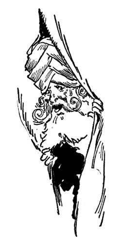 Mustafa clapped his hands sharply and to the small Mudger who bounced into the room he snapped, "Tell Panapee to appear before me at once." He paid no attention to the pleadings of Tazzywaller, who was bumping his head on the floor, nor to the advice of Mixtuppa, who was wagging her head through the curtain. The next moment Panapee stood before the throne. He was as tall and thin as Tazzywaller was round and fat. His little eyes snapped with glee at sight of the chamberlain rolling about on the floor. As purse bearer he always had to walk back of Tazzywaller in royal processions, and to see his rival in disgrace was an exquisite pleasure to the envious old Mudger.