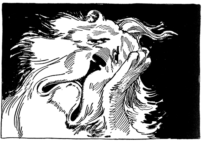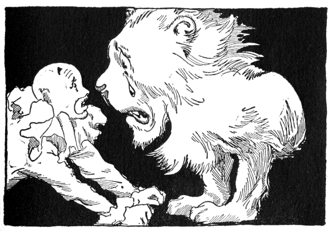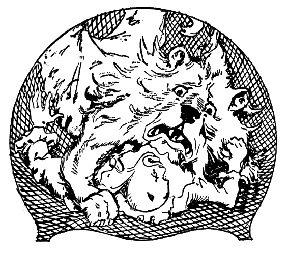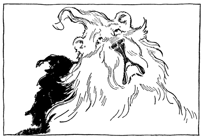 "Lion!" screamed the first. "Lion! Lion! Lion!" screamed all the others, whirling their scimitars until the confusion was terrible.
