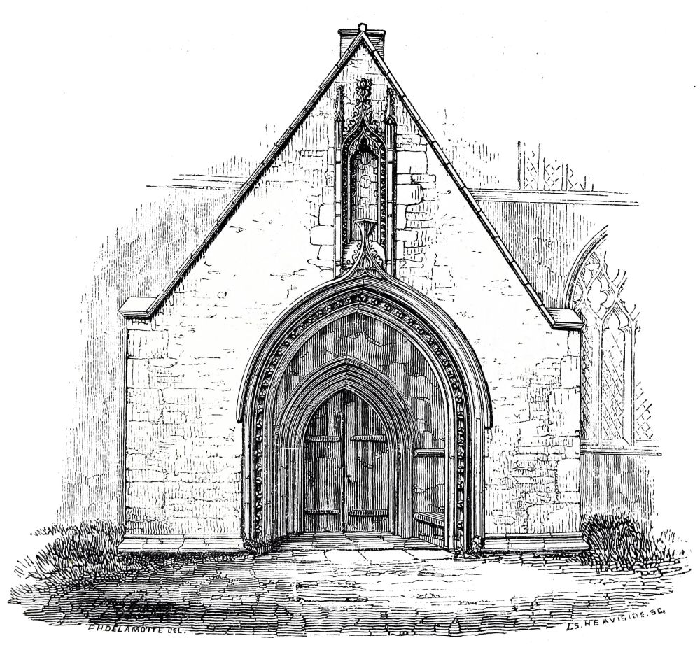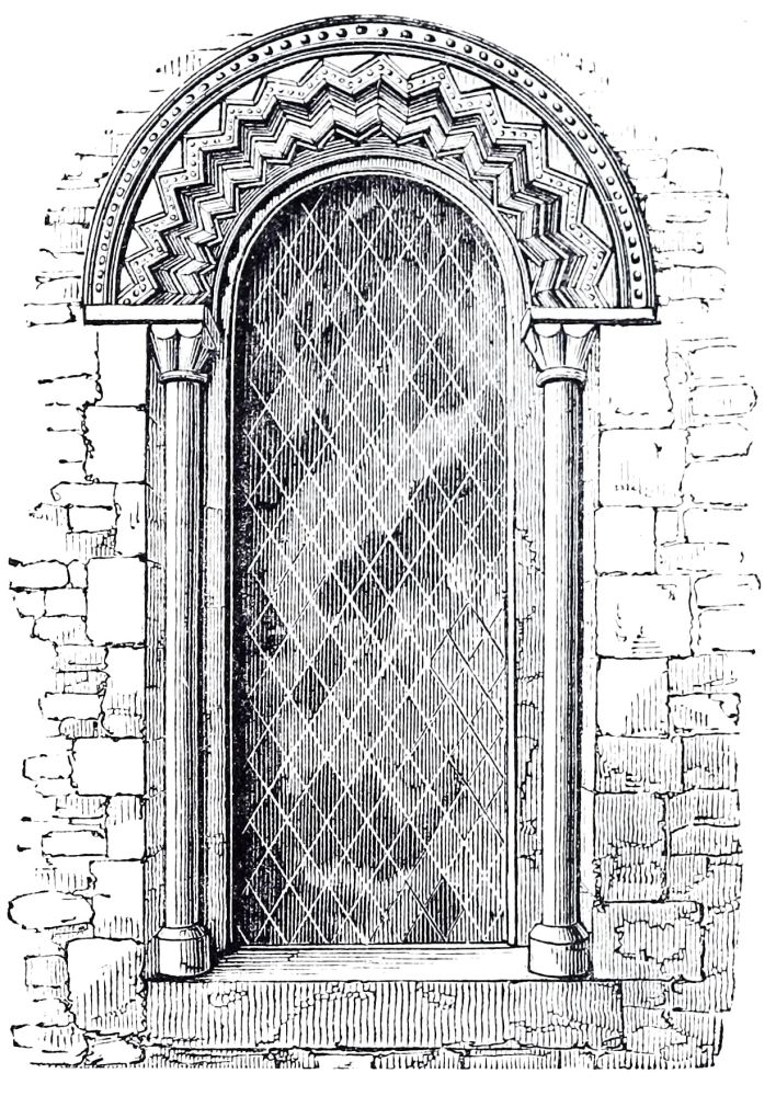consisting chiefly of round and quarter-round members, but all preserving a general square outline. These moldings, however, as well as the jambs and shafts, are frequently entirely overlaid with ornament, which, though of a peculiar and somewhat rude character, produces great richness of effect; and few features of churches are more generally admired than these rich Norman doorways, which are very abundant in many parts of the country, quite as much so as in Normandy itself. The examples in England are quite as fine and as numerous in proportion as in Normandy; and these doorways were so much admired for their rich character, that they have often been preserved when the church has been rebuilt, perhaps several times. The doorways of Iffley Church are among the richest that we have anywhere; not only the very fine one at the west end, but the north and south doors.