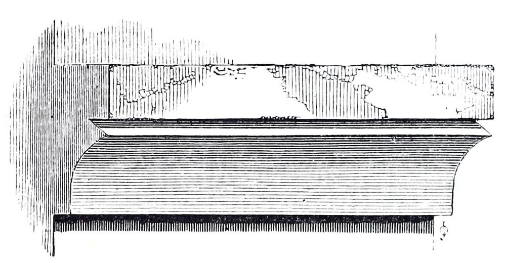 This example is valuable to us also in another respect: the two transepts were only partially injured by the fall of the tower; the greater part of both of them belongs to the original work; the junction of the old work and the new can be distinctly traced; and here we begin to find a difference of character in the new work, and a mark by which we can{27}