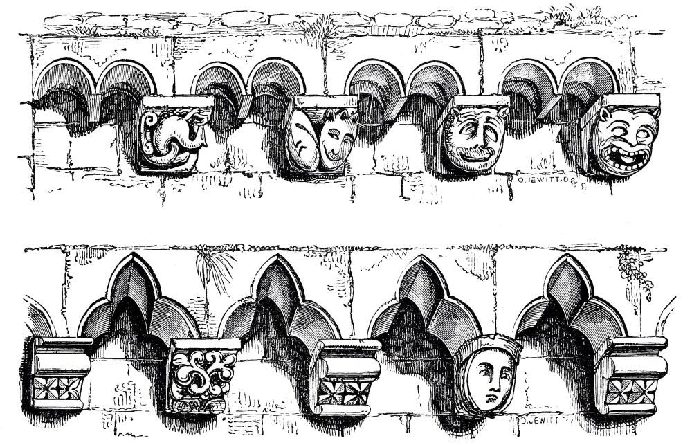 Rickman was the first to reduce chaos into order, and to shew that the age of a building can be ascertained by the construction and the details, on the principle of comparison with well-known dated examples, and he should always have the credit of being the first to establish this. His work was at first thought rather hard reading, and this was natural, because he trusted too much to words only; my “Glossary of Architecture” was called “Rickman made easy,” and this is true, because, by means of the excellent and accurate woodcuts of Orlando Jewitt, I was able to explain all the technical words which Rickman was obliged to use. In the present work I have avoided the use of these as much as possible, and have trusted to the eye in the numerous examples given, rather than to any words to explain them. The same persons who objected to the name of Gothic, objected also to the name of Early English for the earliest Gothic style in England; but{5} this was undoubtedly developed from the Norman, in England, earlier than anywhere else.