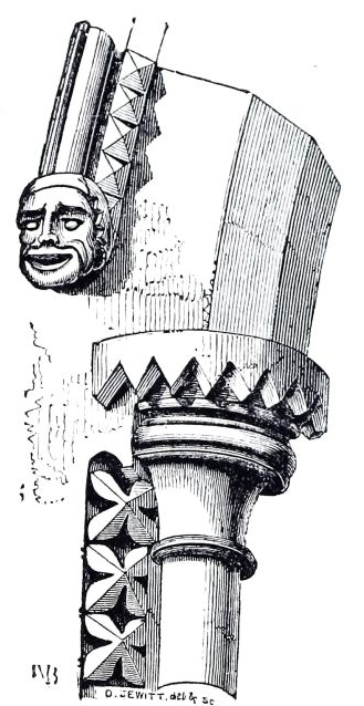at the foot; the work is rude and clumsy Norman, with wide-jointed masonry, and the capitals left plain, to be painted or carved afterwards.