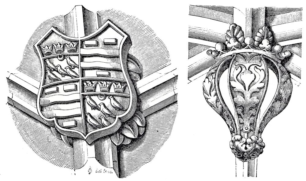 Although the roofs of the aisles at Canterbury had been vaulted, the choir itself had a flat boarded ceiling, painted like that still remaining at Peterborough. The vault of{38} the choir of the cathedral of Sens, from whence came William, the architect of the choir of Canterbury, is also an addition of later date. The same change was made in many other churches of that period. The builders of the early Norman period did not venture to erect a vault over so large a space; we do not find any early vault over a space above twenty feet wide, and few of so wide a span. Many of our Norman cathedrals still have timber roofs over the large spaces, and the aisles vaulted. In Normandy vaults were more frequently used than in England, even at this early period; and this was still more the case in subsequent times, for the fine open timber roofs for which some parts of England are distinguished are unknown in Normandy, where almost every village church is vaulted over.