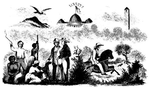 “Well,—I will take up your time with nothing but actual facts, for the truth of which I will be answerable. In a Western tour, not many years since, I saw one day a young lady, fair as a lily, and with a sweet expression of countenance, walking in the street with a little black girl whom she held by the hand. The little girl was about six years old, neatly dressed and very clean; and on her neck she had a little gauze shawl that somebody had given her, the border of which was composed of the figure of the American Eagle many times repeated, each impression accompanied by the word ‘Liberty,’ woven into the fabric.