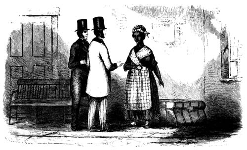 “This curious decoration, together with the wistful look of the child’s face, and the benevolent air of the young lady, with whom I was slightly acquainted, led me to ask some questions, which were answered with an air in which modesty and sensibility were blended. I learned that the young lady had undertaken the trying task of accompanying the little girl through the place—which[15] was a considerable village—for the purpose of collecting the sum of fifty dollars, with which to purchase the freedom of the child.