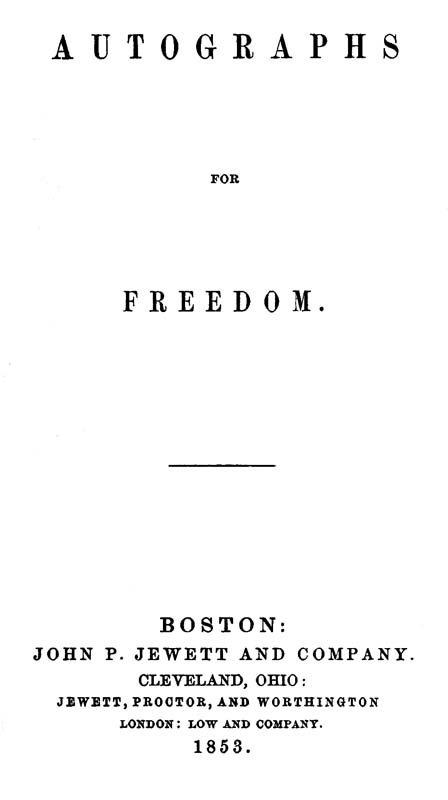 The proceeds of the sale of the “Autographs for Freedom,” will be devoted to the dissemination of light and truth on the subject of slavery throughout the country.