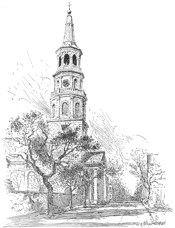 St. Michael’s Episcopal Church, Broad and Meeting Streets: its Steeple and Chimes Famous Courtesy of South Carolina National Bank