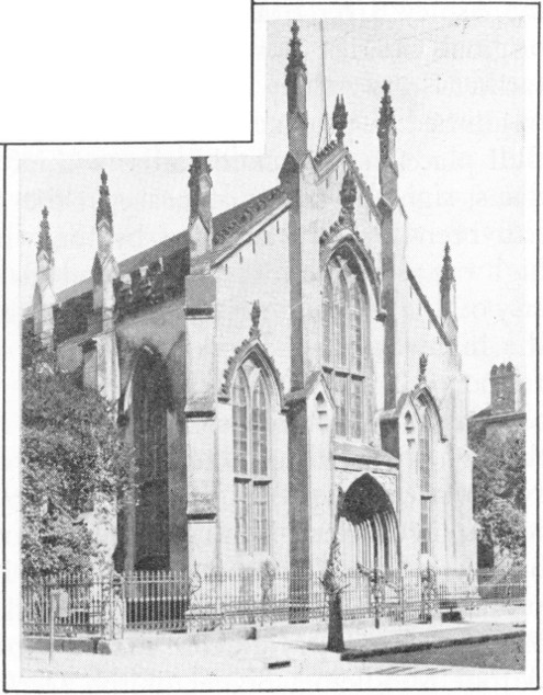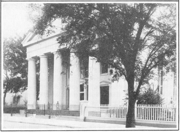 SCOTCH PRESBYTERIAN CHURCH, 53 Meeting Street: Sprung from the White Meeting House, the First (Scotch) Presbyterian Church dates to 1731. The Reverend Hugh Stewart, a native Scot, was its first pastor. The present edifice was dedicated in 1814. It was severely damaged in the earthquake of August 31, 1886, but fully restored. It has one of the finest auditoriums in the country. When the Marquis of Lorne (later the Duke of Argyle) and his wife, the Princess Louise, daughter of Queen Victoria, were in Charleston in January, 1883, they visited the Scotch Church to inspect a memorial tablet to their cousin, Lady Anne Murray. The Duke of Sutherland also made a trip to Charleston expressly to see it. May 2, 1819, President James Monroe attended service in the Scotch Church, hearing a sermon by the Reverend Mr. Reid, the pastor. This 29 church celebrated its bicentennial in March, 1931. During 100 years it has had three pastors—the Reverend John Forrest, D.D., forty-seven years, the Reverend W. Taliaferro Thompson, D.D., twenty years and the Reverend Alexander Sprunt, D.D., thirty-three years. Prominent Charlestonians sleep the sleep eternal in its yard.