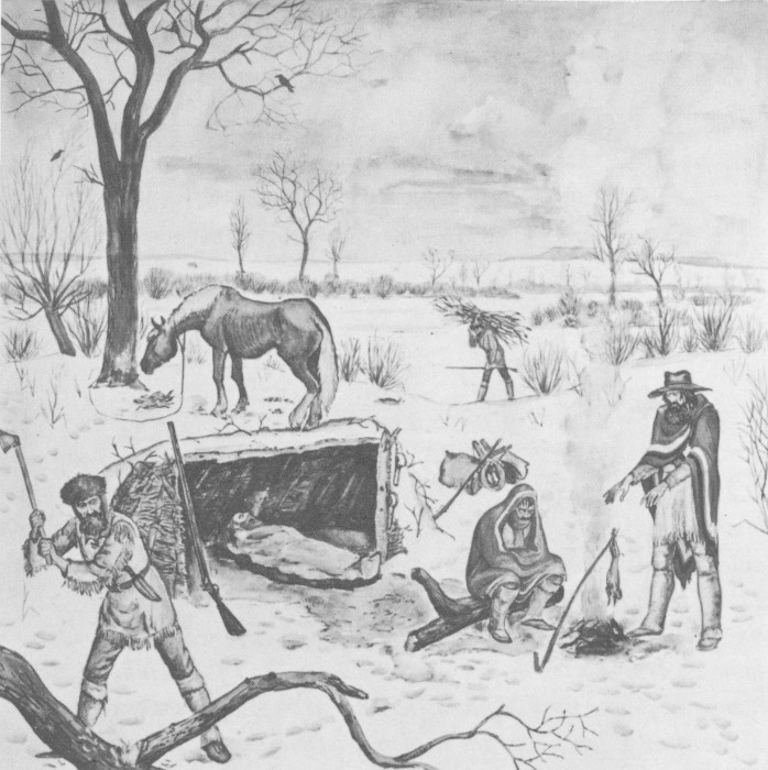 Returning Astorians at Scotts Bluff Christmas Day, 1812. Original sketch in Oregon Trail Museum.