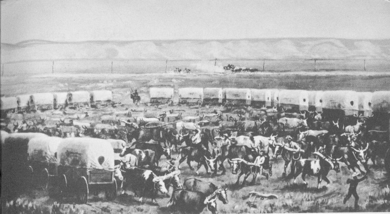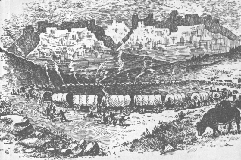 In 1827 Ashley had sent a wheeled cannon up the Platte route to impress the Indians at Great Salt Lake. However, the first bona fide wagons on the Oregon Trail were those of the Smith-Jackson-Sublette caravan of 1830, headed for the rendezvous scheduled in the Wind River Valley, near present Lander. In a famous letter to Secretary of War Eaton, the partners reported