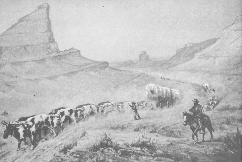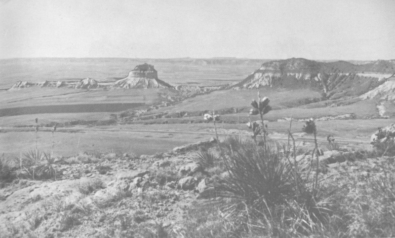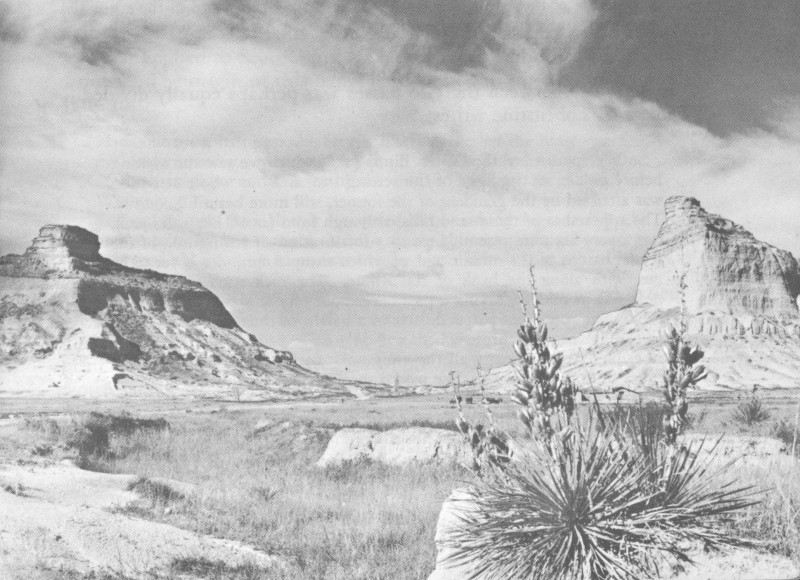SCOTTS BLUFF was a celebrated landmark on the great North Platte Valley trunkline of “the Oregon Trail,” the traditional route of overland migration to Oregon, California, and Utah. Today the massive castellated bluff looks down upon concrete highways, railways, airports, irrigated farms, and bustling communities of the mid-20th century; but it is the same awe-inspiring sentinel which 100 years ago watched the passage of countless trains of ox-drawn covered wagons, and the twinkling of many campfires. Scotts Bluff National Monument keeps alive the epic story of our ancestors who dared cross the wilderness of plains and mountains to plant the western stars in the American flag.