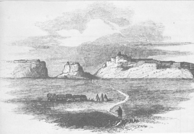 In 1839, Dr. Frederick Wislizenus from St. Louis, traveling to Fort Laramie with the caravan led by Moses Harris, described the bluff: