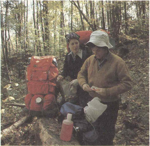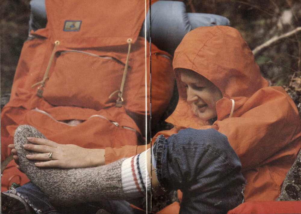 First things first! A rain-geared backpacker makes sure her feet are protected against blisters. The park offers more than 1,300 kilometers (800 miles) of trails, including 110 kilometers (70 miles) of the Appalachian Trail that stretches from Maine to Georgia.