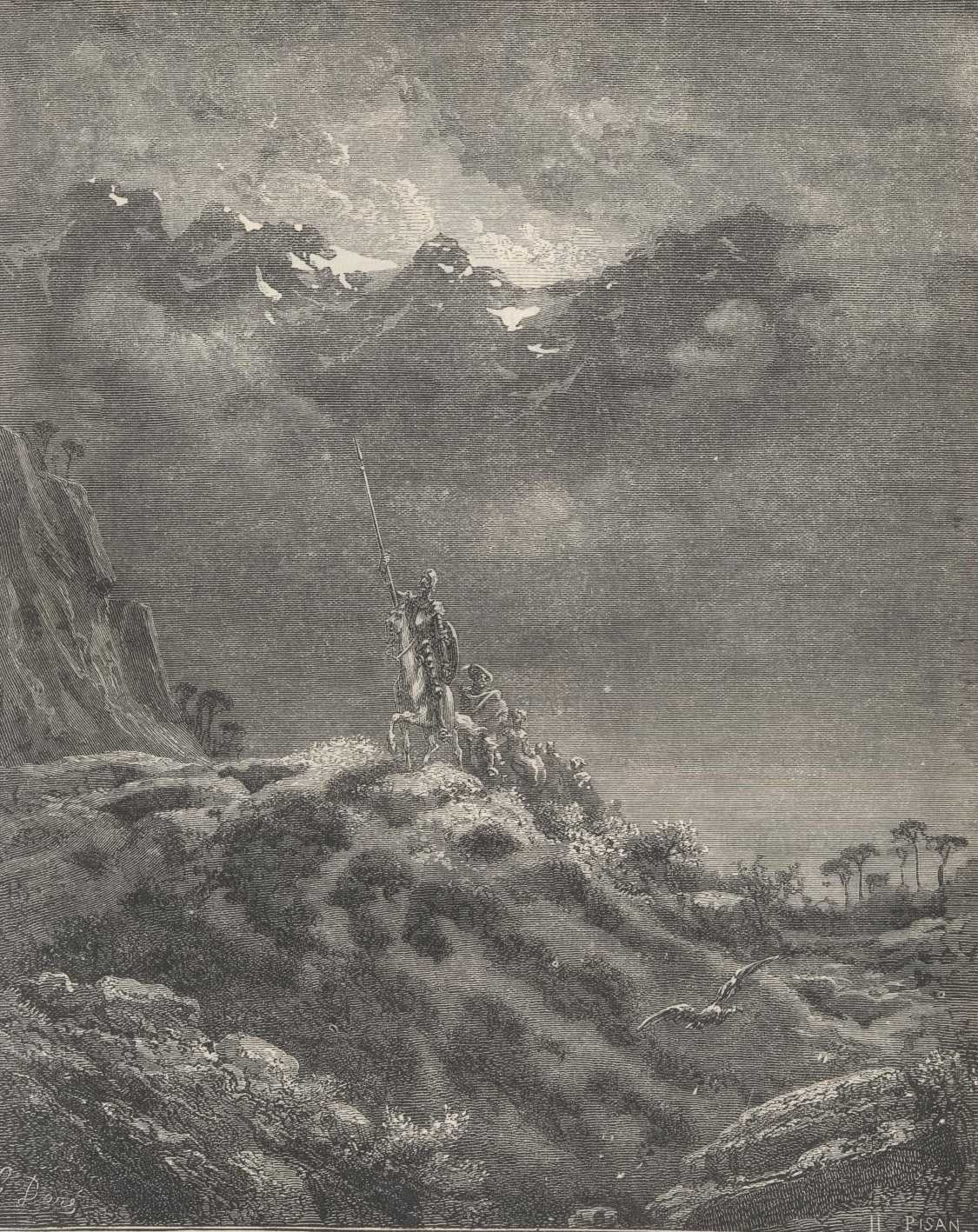 "This fair lady, brother Sancho," replied the curate, "is no less a personage than the heiress in the direct male line of the great kingdom of Micomicon, who has come in search of your master to beg a boon of him, which is that he redress a wrong or injury that a wicked giant has done her; and from the fame as a good knight which your master has acquired far and wide, this princess has come from Guinea to seek him."