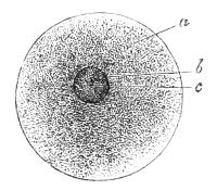 Fig. 1.—An egg: a single corpuscle of protoplasm with nucleus b c, and body a.