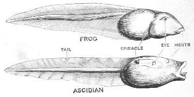 My object in the next place is to show that the structure and life-history of these Ascidians may be best explained on the hypothesis that they are instances of degeneration; that they are the modified descendants of animals of higher, that is more elaborate structure, and in fact are degenerate Vertebrata, standing in the same relation to fishes, frogs, and men, as do the barnacles to shrimps, crabs, and lobsters.