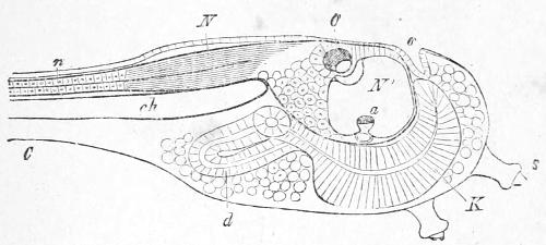 No naturalist doubts that Seps and Bipes represent two stages of Degeneration, or atrophy of the limbs; that they have, in fact, been derived from the five-toed four-legged form, and have lost the locomotor organs once possessed by their ancestors. This very partial or local atrophy is not however that to which I refer when using the word Degeneration. Let us imagine this atrophy to extend to a variety of[32] important organs, so that not only the legs, but the organs of sense, the nervous system, and even the mouth and digestive organs are obliterated—then we shall have pictured a thorough-going instance of Degeneration.