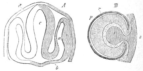 Degeneration may be defined as a gradual change of the structure in which the organism becomes adapted to less varied and less complex conditions of life; whilst Elaboration is a gradual change of structure in which the organism becomes adapted to more and more varied and complex conditions of existence. In Elaboration there is a new expression of form, corresponding to new perfection of work in the animal machine. In Degeneration there is suppression of form, corresponding to the cessation of work. Elaboration of some one organ may be a necessary accompaniment of Degeneration in all the others; in fact, this is very generally the case; and it is only when the total result of the Elaboration of some organs, and the Degeneration of others, is such as to leave the whole animal in a lower condition, that is, fitted to less complex action and reaction in regard to its surroundings, than was the ancestral form with which we are comparing it (either actually[33] or in imagination) that we speak of that animal as an instance of Degeneration.