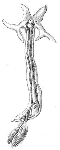 Fig. 9.—Adult Barnacle or Lepas (one of the Cirrhipedes). Natural size.