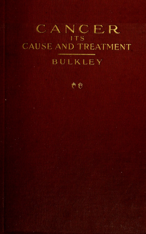 In my lectures given here two years ago I considered, as far as I could in the time allowed, the nature of cancer,[1] and the evidence in favor of its being a medical rather than a purely surgical disease; and in order that the trend of what shall follow may be clearly understood, brief reference may be made to some of the principal points studied and developed in the preceding lectures. To this end I may restate the conclusions presented at their close, as developed 20in the lectures, perhaps with some alterations or additions which two years’ further study, observation, and treatment of cancer may suggest.