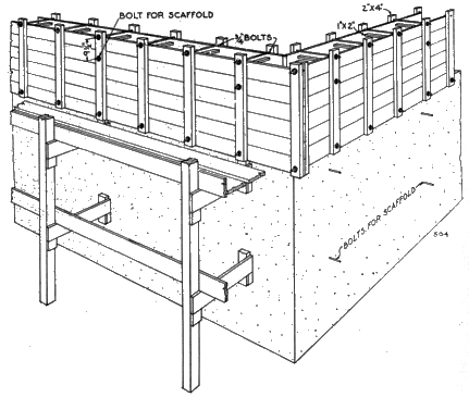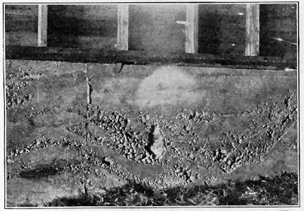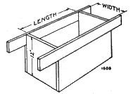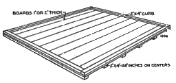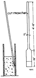 Should sand require washing the simplest way for small quantities is to build a loose board platform from 10 to 15 feet long, with one end higher than the other. On the lower end and sides nail 2 by 6 inch boards. Spread the sand over the platform in a layer 3 or 4 inches thick and wash with water. The water may be supplied by any means which will cause agitation of the sand and allow the lighter material to run off with the water. When pressure or a head is obtainable the water is most easily applied by means of a garden hose. The washing should be started at the higher end and the water allowed to run through the sand and over the 2 by 6 inch piece at the bottom. Figure 1 illustrates a convenient trough for washing larger quantities.