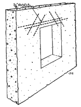 Example 1.—A wall 9 inches thick, 12 feet high, and 30 feet long has a door opening 3 feet wide and 6 feet high, also a footing 18 inches wide and 9 inches deep. The concrete is to be mixed in the proportions of 1:2:4.