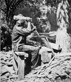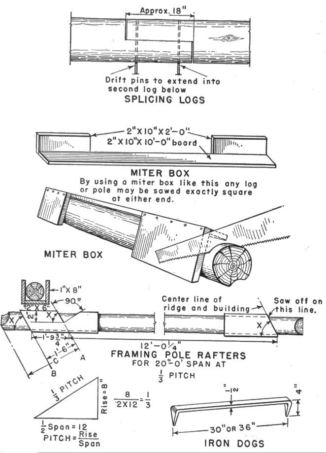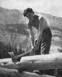 The pioneer had but an ax for a tool and consequently made only those articles which could be hewed out of wood. Today there are many tools available, and to do a first class job of log construction one must know how to handle the double-bitted or single-bitted ax, the broadax, saw, adz, chisel, slick, ship auger, and drawknife. In this bulletin it is assumed that the reader is familiar with the ordinary frame building methods used where wood is the principal construction material.