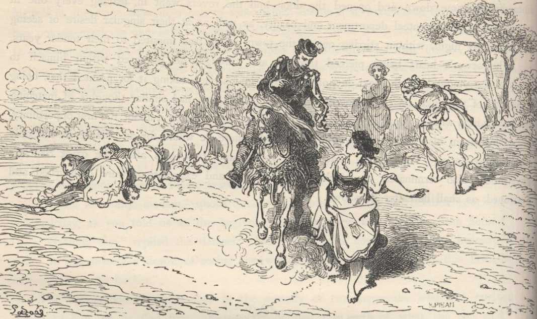 Sancho was fascinated by the girl's beauty, and he asked her who she was, where she was going, and what had induced her to dress herself in that garb. She with her eyes fixed on the ground answered in modest confusion, "I cannot tell you, senor, before so many people what it is of such consequence to me to have kept secret; one thing I wish to be known, that I am no thief or evildoer, but only an unhappy maiden whom the power of jealousy has led to break through the respect that is due to modesty."