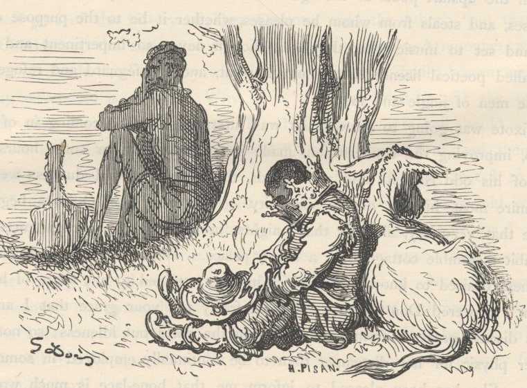 "Love might very well have let it rest upon the sufferings of my ass, and I should have been obliged to him," said Sancho. "But tell me, senora—and may heaven send you a tenderer lover than my master—what did you see in the other world? What goes on in hell? For of course that's where one who dies in despair is bound for."