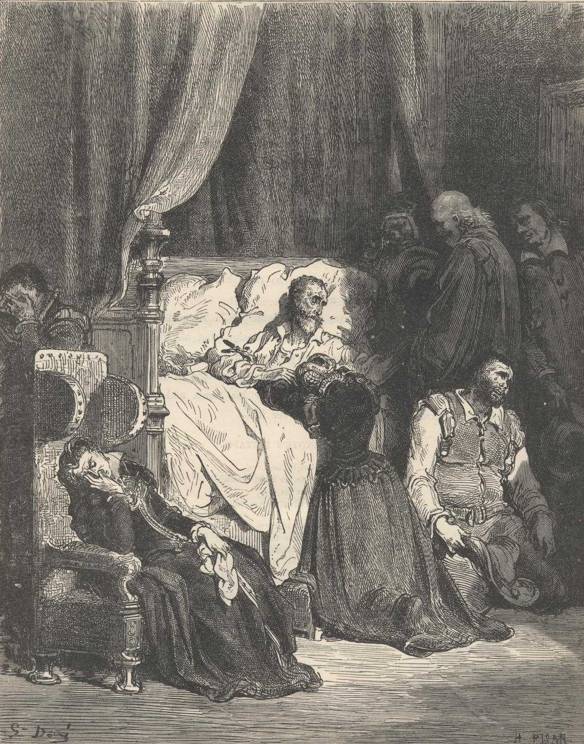 At last Don Quixote's end came, after he had received all the sacraments, and had in full and forcible terms expressed his detestation of books of chivalry. The notary was there at the time, and he said that in no book of chivalry had he ever read of any knight-errant dying in his bed so calmly and so like a Christian as Don Quixote, who amid the tears and lamentations of all present yielded up his spirit, that is to say died. On perceiving it the curate begged the notary to bear witness that Alonso Quixano the Good, commonly called Don Quixote of La Mancha, had passed away from this present life, and died naturally; and said he desired this testimony in order to remove the possibility of any other author save Cide Hamete Benengeli bringing him to life again falsely and making interminable stories out of his achievements.