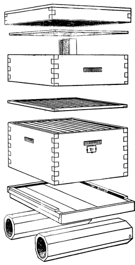 Fig. 1. A 10-frame hive with comb-honey super and perforated zinc queen excluder 8