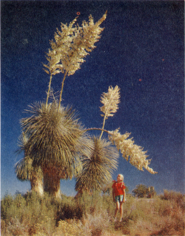 Yucca elata (Palmilla, Soapweed) is one of the best known plants of the Southwest. The beautiful white plumes of flowers appear in May and June.