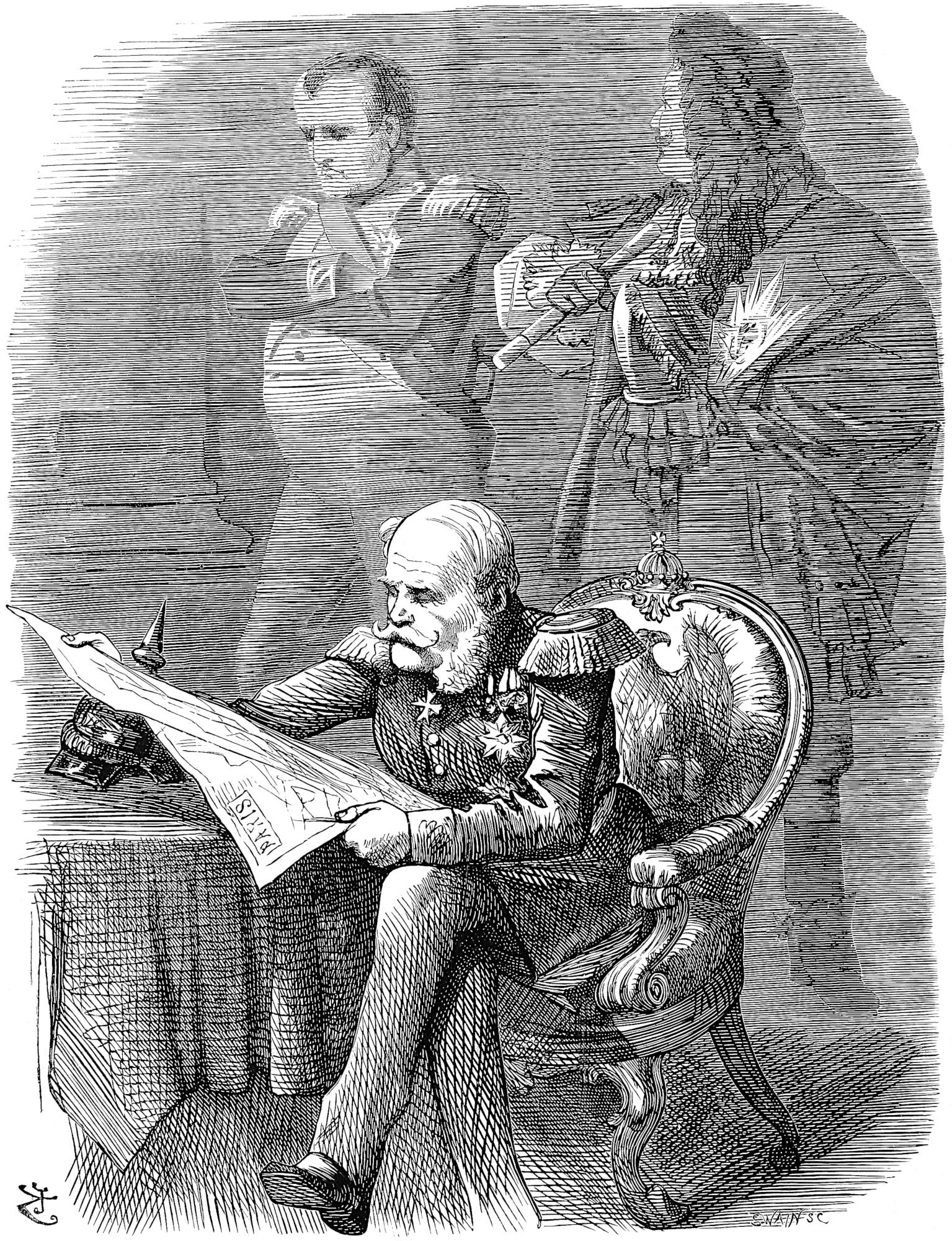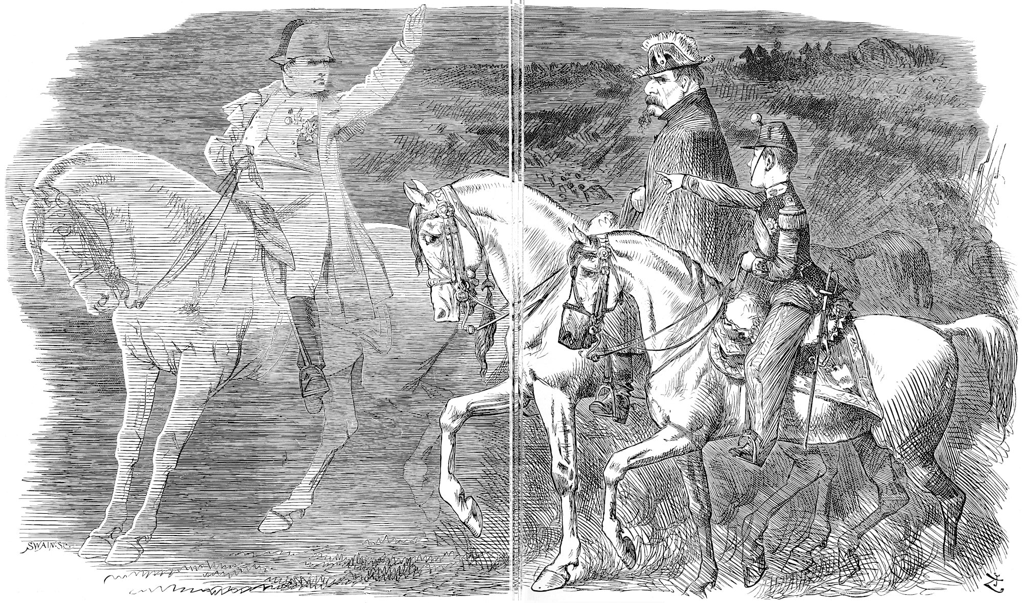 | France had declared war against Germany, and the Emperor Napoleon and his son had left Paris to take command. The shade of the Great Napoleon forebodes the disasters which followed. | |