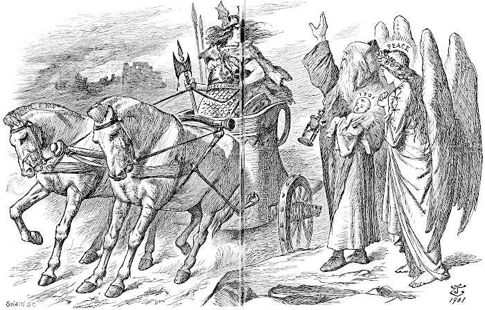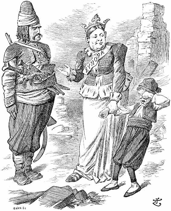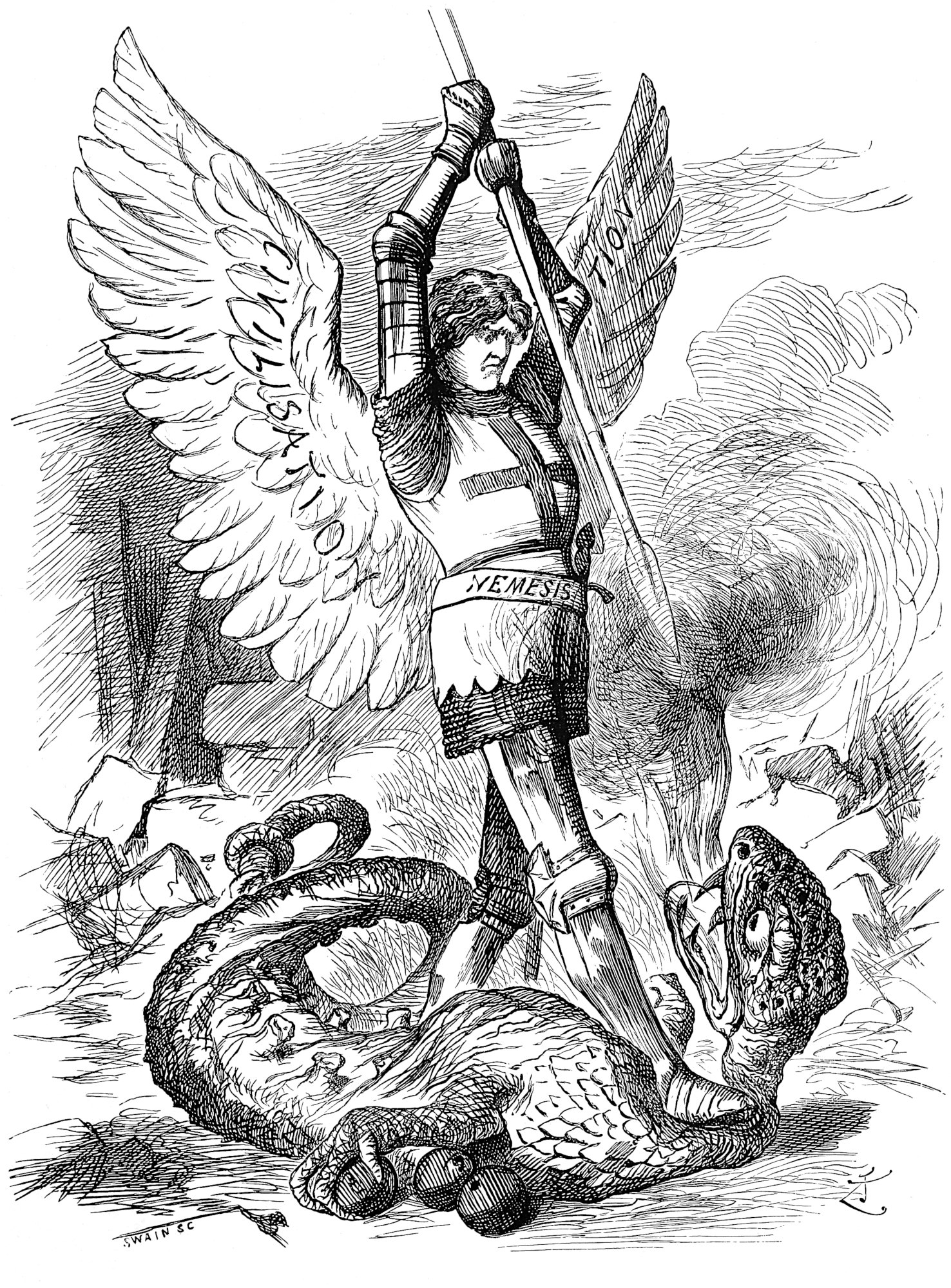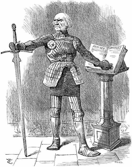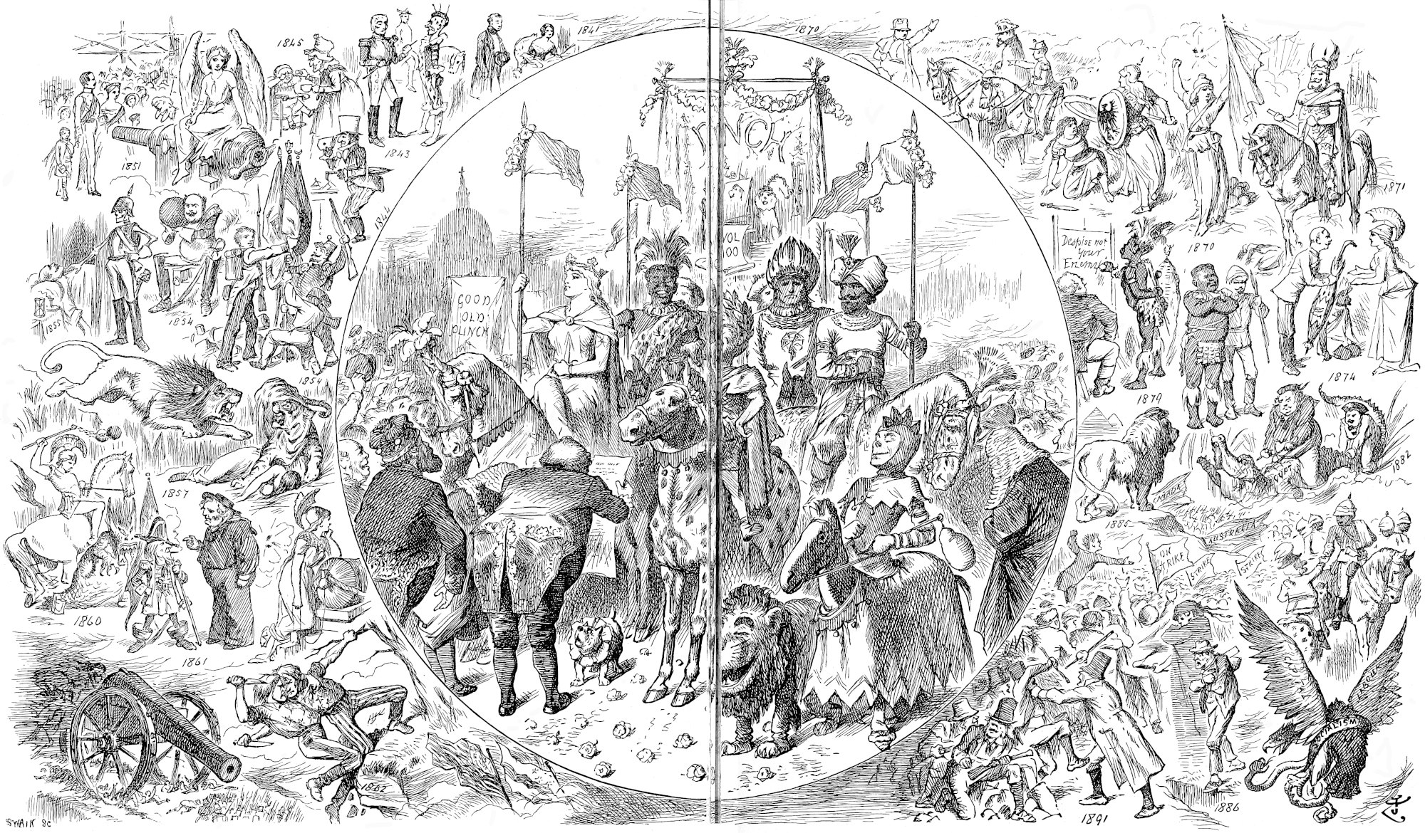 THE present collection of Sir John Tenniel’s Cartoons is intended to be a selection comprising the more memorable of those which have appeared in “Punch” during the last 50 years. The first in the collection bears the date of 1851, and the last is Sir John Tenniel’s final Cartoon in January, 1901. Short explanatory notes have been provided, but as most of them will, perhaps, be unnecessary to those to whom the Cartoons themselves are familiar, they have been grouped together and combined with the Table of Contents at the commencement of the volume, where they can readily be referred to.
