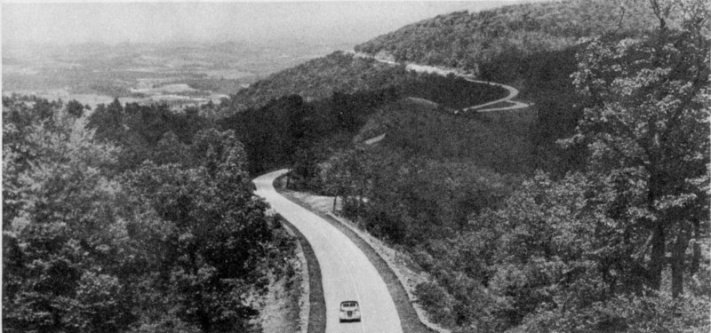 Blue Ridge Parkway, high road through Virginia and North Carolina, designed especially for the leisurely tourist, represents a new conception in roads. It is not an express parkway of the type built about the big cities, but a quiet way through a distinctive part of the American scene—a road intended for gypsy-like travel on the ride-awhile, stop-awhile basis.