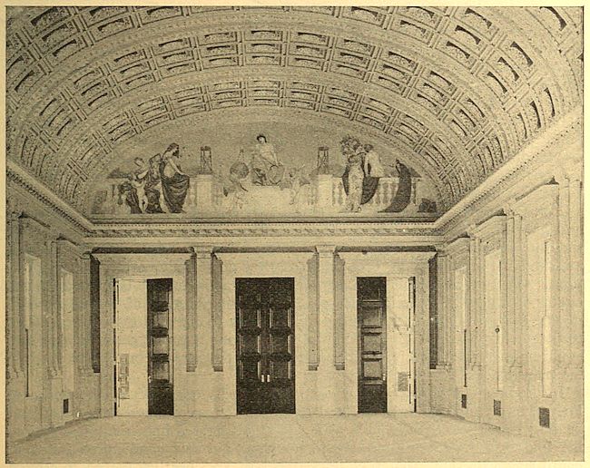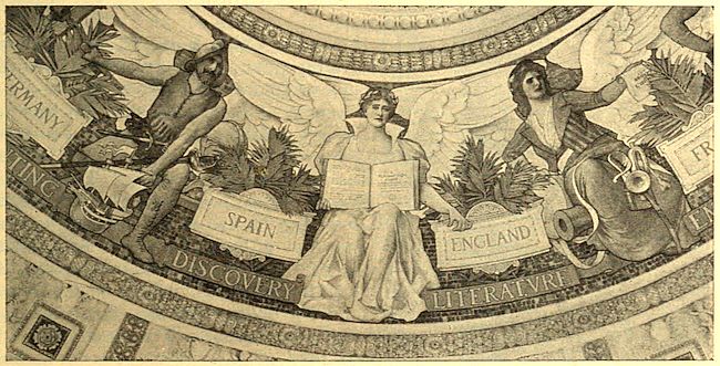 The intention of this Handbook is to furnish such an account of the new building of the Library of Congress as may prove of interest to the general reader, and at the same time serve as a convenient guide to actual visitors. To this latter end, a system of headings and sub-headings has been introduced, and the building has been described throughout in the order in which a visitor might naturally walk through it. Criticism has been avoided in the general description, but a brief survey of the artistic qualities of the Architecture, Sculpture, and Painting is given in Mr. Caffin’s supplementary essay.