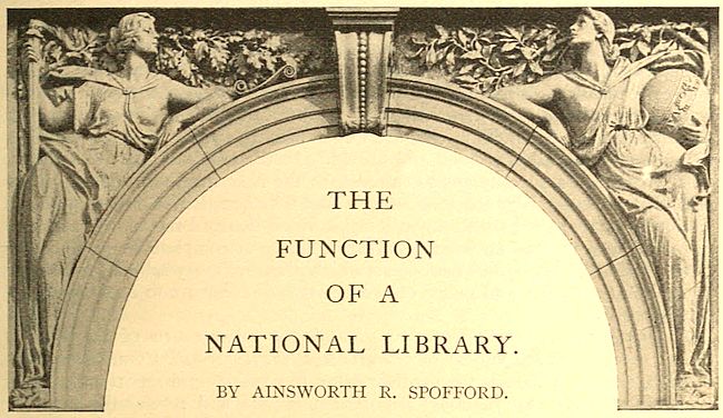 The writer had intended at first to give rather a full account of the collections of the Library, of the Smithsonian system of exchange, of the operation of the copyright law, and of the general system under which the Library was carried on. So much of what he might have thus described, however, would have been entirely changed, and so much more considerably modified, by the new methods of administration made possible and necessary by the new building, that it was decided to pass lightly over all matters connected with the administration of the Library. Should another edition of the Handbook be called for, it is hoped that there will be an opportunity to supply this omission. In the meantime it will be found that Mr. Spofford’s paper on the Function of a National Library will serve to indicate the general scope of the institution.