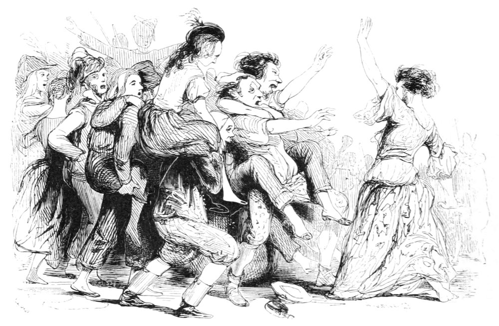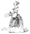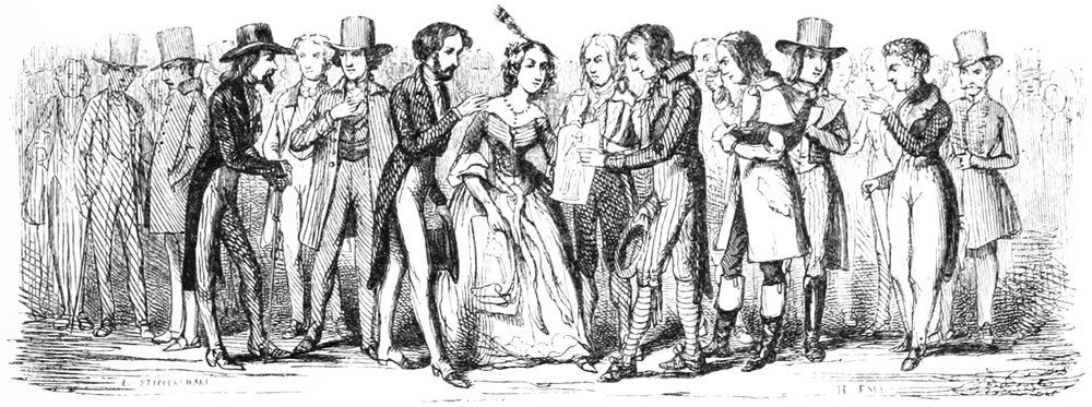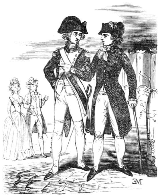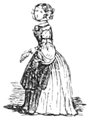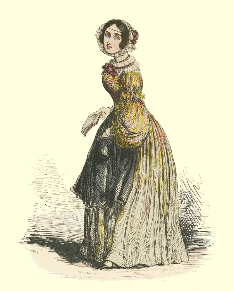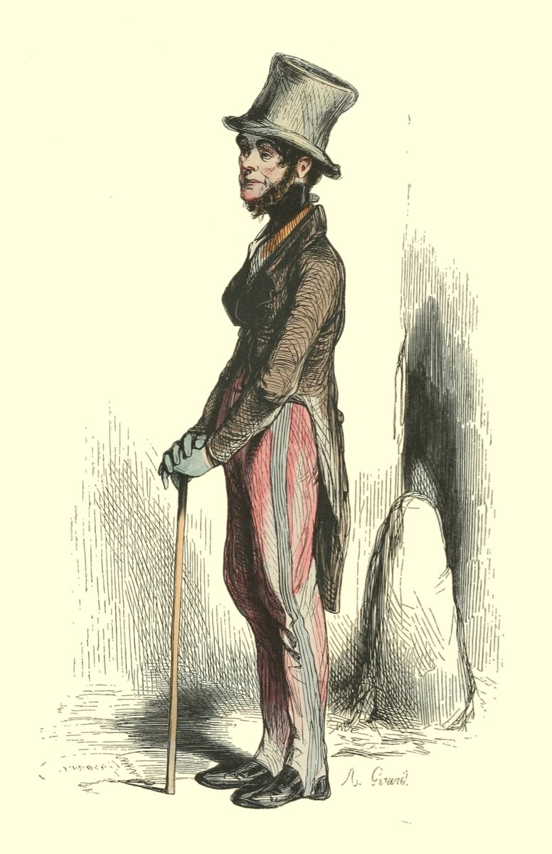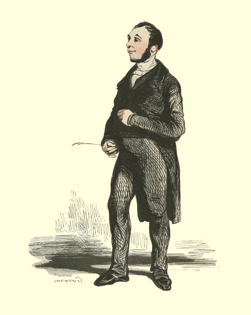 Pour qu’un jeune homme fût à la mode, il lui fallait un habit de drap fin ou de soie, suivant la saison, qui serrât exactement la taille et les bras, car on avait la prétention de paraître mince; l’embonpoint sentait la roture, et le ventre était à l’index, comme chose prohibée. L’élégant petit-maître sortait encore un gilet d’une étoffe chinée ou d’un drap chamois, des culottes de sénardine couleur jaune pâle ou gris de lin, des bas de soie à raies longitudinales et variées, des souliers étroits et lustrés à la cire luisante, des boucles d’argent taillées à facettes comme le diamant. L’été, on lui voyait un léger bambou à la main; l’hiver, il jetait sous son bras gauche un énorme manchon à longs poils soyeux, dans lequel il se serait bien gardé de cacher ses mains quand il se promenait aux Tuileries ou au Palais-Royal. N’oublions pas le chapeau de castor, qui, pendant un ou deux ans, fut d’une hauteur démesurée. Paris l’avait emprunté aux Hollandais. Je pourrais bien retracer ici ce qu’on appelait le négligé pour une certaine classe de jeunes fashionables du haut parage, auxquels on pouvait appliquer ce trait de Gilbert: