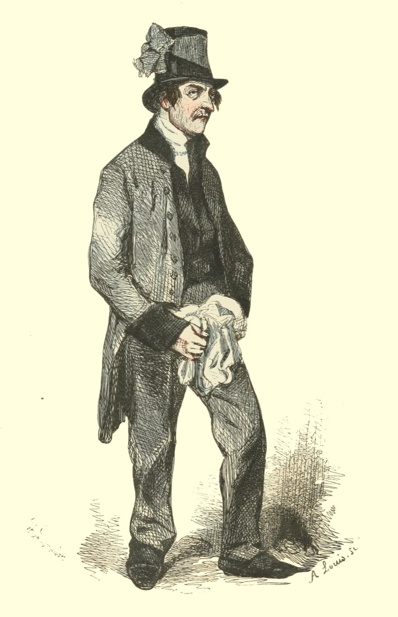Cet important se montrait fort recherché dans son extérieur; on ne lui voyait jamais que des habits du plus beau drap de Louviers; un jabot, aussi blanc et aussi bien plissé que ses longues manchettes, sortait de sa veste entr’ouverte et laissait voir une chemise de toile de Hollande. En parlant, il jouait négligemment avec les breloques sonores de sa montre à répétition. La tête haute, l’abord froid et impérieux, la parole brève, il devenait poli, IV insinuant, mielleux avec les clients qu’il voulait acquérir ou tromper; mais, du moment où il craignait de se voir déçu dans ce calcul d’avidité, il éclatait avec violence, et ses procédés achevaient de révéler un caractère affreux. On s’instruisait chez lui parce que son étude avait la vogue et une fort belle clientèle; mais ses clercs le méprisaient au fond du cœur. A la même époque, j’ai rencontré, dans la même profession, un autre type original, digne du pinceau de Regnier ou de Molière. Ce noir suppôt de Thémis avait choisi son repaire dans une assez vilaine rue; sa maison délabrée était de la plus chétive apparence, et n’avait qu’une porte bâtarde. Quand vous l’aviez franchie, un corridor assez obscur vous conduisait à une étude enfumée, dont les clercs assez âgés ressemblaient à des recors. En entrant dans un cabinet encore plus obscur que l’étude, je n’aperçus pas sans quelque émoi un spectre d’une stature colossale et d’une vieillesse ferme et vigoureuse. Il avait un bonnet de laine rouge dressé sur sa tête; une redingote d’un gros drap gris, salie par le tabac, le couvrait tout entier. Des mains fortes, mais sèches et osseuses, garnies d’ongles noirs, longs et recourbés comme des serres d’oiseau de proie, sortaient de ses manches avec une partie de l’avant-bras. Ses yeux, enfoncés dans leurs orbites, jetaient un feu sombre sous d’épais sourcils, dont quelques poils hérissés se relevaient vers un front plissé de rides. Du fond de sa vaste poitrine sortait une voix forte et menaçante qui devenait aiguë et criarde dans les fréquents accès d’une colère prompte à s’allumer. Cet individu, rongé d’avarice, dévoré d’amour de l’argent, plein de fourberie, semblait être le monstre de la chicane personnifiée. A son aspect, je tremblais sur le seuil de son cabinet, je tremblais en l’approchant, et à peine si je parvins à balbutier quelques mots de l’affaire pour laquelle on m’avait envoyé vers lui. Mon procureur, au contraire, était un beau fils, il avait des prétentions à passer pour un homme du monde; à mon retour, je me trouvais en verve, et je l’amusai beaucoup en lui improvisant le portrait de son odieux confrère. Au reste, il ne faudrait pas juger la compagnie sur ces deux modèles: en effet, quoique un peu décriée, elle renfermait un assez grand nombre d’honnêtes gens; et tel procureur de l’époque était un véritable juge de paix avant que la loi eût institué ces magistrats de la conciliation. Quant aux notaires, leur compagnie jouissait encore de l’estime et de la confiance générales, malgré quelques échecs causés par la manie des affaires, qui commençait à s’introduire dans leur cabinet. Les jeunes gens qui aspiraient au notariat contractaient de bonne heure des habitudes d’ordre, de régularité, de probité sévère; mais on s’apercevait V déjà qu’il manquait beaucoup de choses à leur instruction, comme à celle de leurs patrons; elle ne suffisait plus aux besoins de la société et à la variété des transactions. Il y avait une ligne de démarcation entre les clercs de notaire et les clercs de procureur, et on les distinguait sans peine au premier coup d’œil, quoiqu’ils suivissent également la mode à laquelle ils n’étaient pas moins soumis que les femmes.