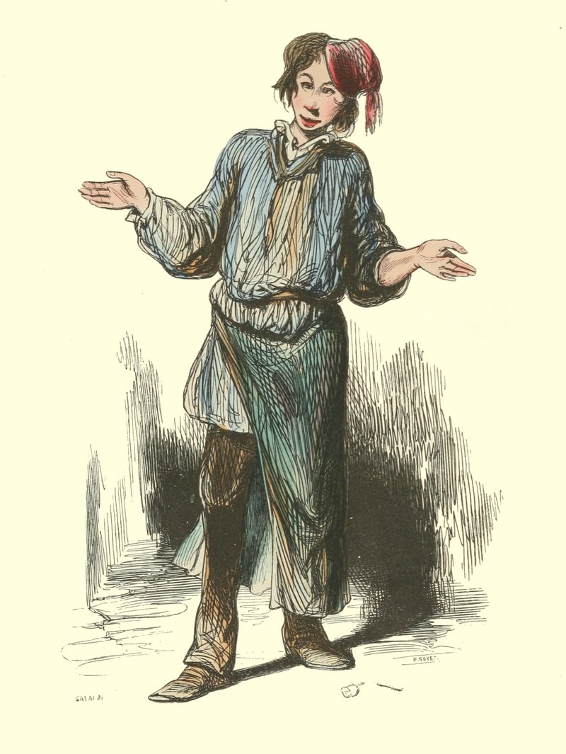 Voulez-vous un Spartacus, un César, un Cicéron, un saint Étienne, un Clovis, un Molière, etc.? Souhaitez-vous faire revivre sur la toile une notabilité quelconque de l’antiquité ou des temps modernes? Vous faut-il un baron féodal ou un serf, un Européen ou un sauvage, un martyr ou un Jupiter Olympien, un discobole ou un soldat de la république française? Allez vous-en dans une de ces rues sales et tortueuses dont fourmille notre belle capitale; montez un escalier qui tient le milieu entre une échelle et un mât de cocagne, et là, au fond de quelque grenier, vous trouverez la notabilité demandée, le saint, l’empereur, le roi, le poëte, le guerrier, ad libitum, dans la personne du modèle.