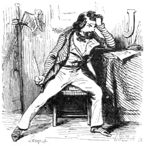 L’artiste était en tenue de travail; il avait sa blouse multicolore, son bonnet rouge, sa palette à la main et sa pipe à la bouche. Le modèle, après avoir déjeuné le plus copieusement possible, se déshabillait lentement, et commençait ses exercices.