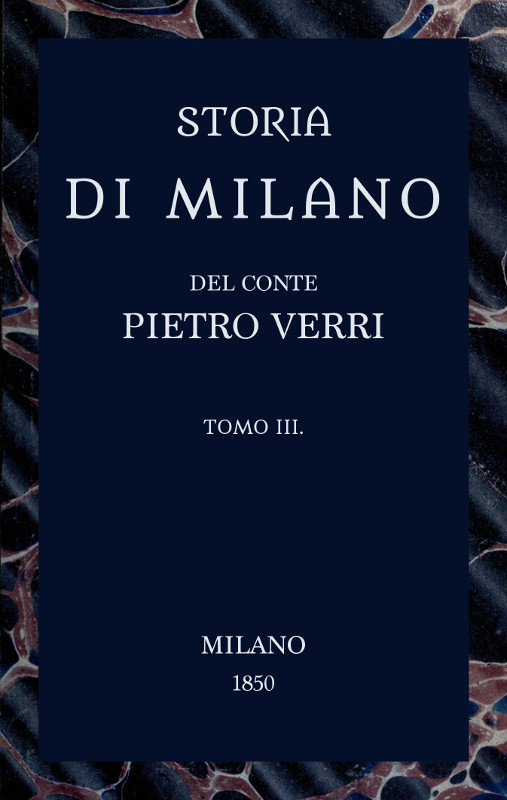 Allorquando l'anno 1804, nelle Notizie premesse alle Opere Economiche del conte Pietro Verri nella Raccolta degli Scrittori classici italiani di Economia Politica (tomo XV della Parte moderna) mi dolsi della sfortuna accaduta alla di lui Storia di Milano, di essere stata mutilata e interpolata da mano inesperta per la metà del secondo volume della edizione originale, e spiegai il desiderio che fosse una volta restituita nella sua integrità; era ben lungi dal prevedere che dopo tanto intervallo di tempo avrebbe il caso recato a me l'incarico di riformare e di compire questo lavoro. E quando vidi che gli editori della ristampa della storia, confidando nella mia buona volontà, nel chiudere il terzo volume contrassero col pubblico l'impegno di dare riveduto e compito per mia mano il restante dell'opera, me ne incaricai di buon grado senza che ben sapessi ciò che si sarebbe potuto da me mantenere, e mentre non abbastanza conosceva sino a qual segno avrei potuto giovarmi de' materiali lasciati dal conte Verri, nè quanto avrebbe importato la riforma del centone del canonico Frisi. Il che feci per quella costanza di affetto e di venerazione che mi unirono all'autore nell'ultimo periodo della sua vita, e per un dovuto ricambio della benevolenza con cui mi distinse, benchè io avessi allora oltrepassato appena i ventiquattro anni; e da ciò altronde ne venne [38] che soltanto alcuni mesi dopo la fatta promessa mi trovai posto in grado di dare incominciamento all'opera, coll'essermi stati dal figlio dell'autore, istruito e cortese cavaliere, comunicati i manoscritti contenenti le prime tessere da quello predisposte per il proseguimento della storia. Ho quindi dovuto protrarre quasi d'un anno l'allestimento di questa continuazione; nè altro da me si è potuto, per compensarne il ritardo, se non che adoperarvi la possibile diligenza onde reggesse con minore vergogna al paragone del lavoro che lo precede.